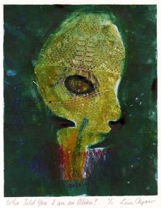 These are original monoprints. They are one of a kind. The framed size with a mat is 15.5 x 17.5 inches. The paper size is 11 x 14 inches.